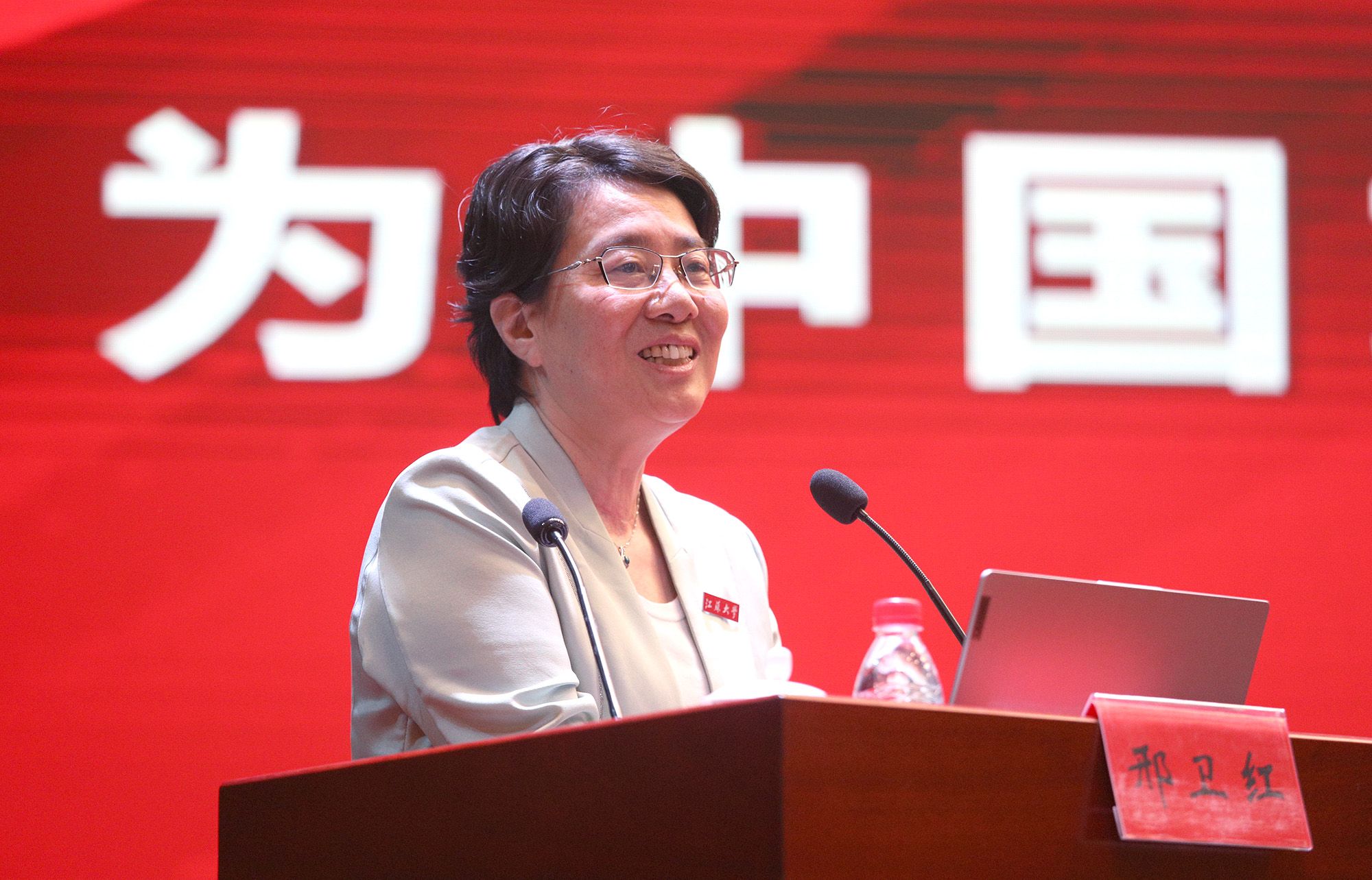 邢卫红以《自信自强 奋楫争先 为中国式现代化建设贡献青春力量》为题,为毕业生讲授最后一堂思政课。她带领大家重温了习近平总书记关于青年工作的重要讲话精神,结合“博学、求是、明德”江大校训和“自强厚德,实干求真”江大精神,从“强信念、树理想,筑牢信仰之基”“强本领、长才干,永葆奋斗姿态”“强担当、善作为,争创卓越新功”三个方面与大家进行了分享交流。