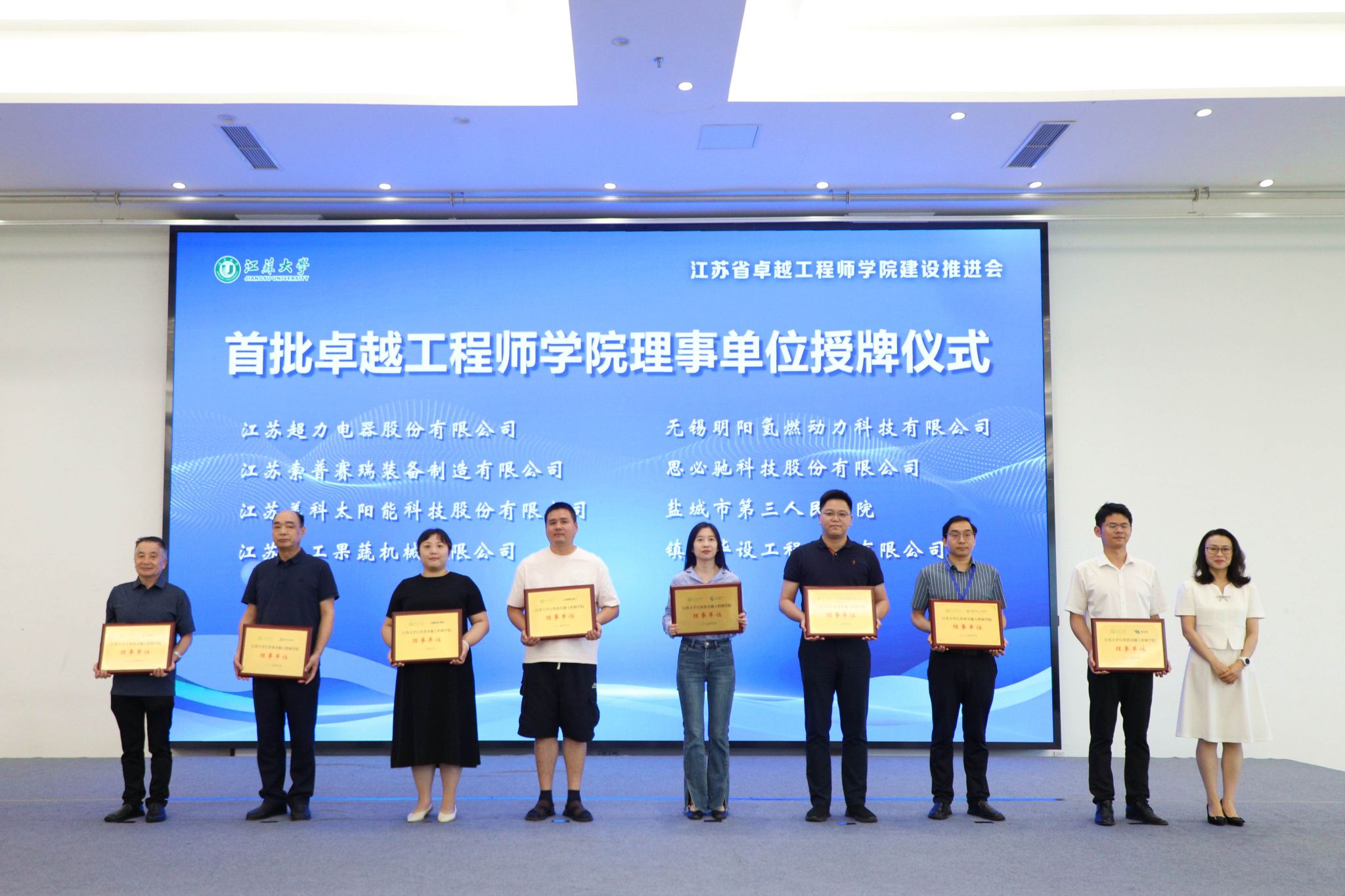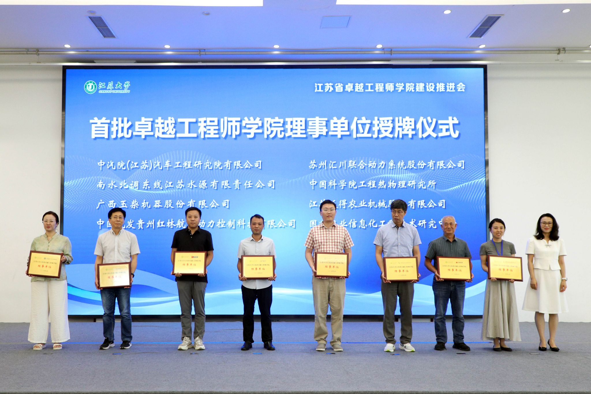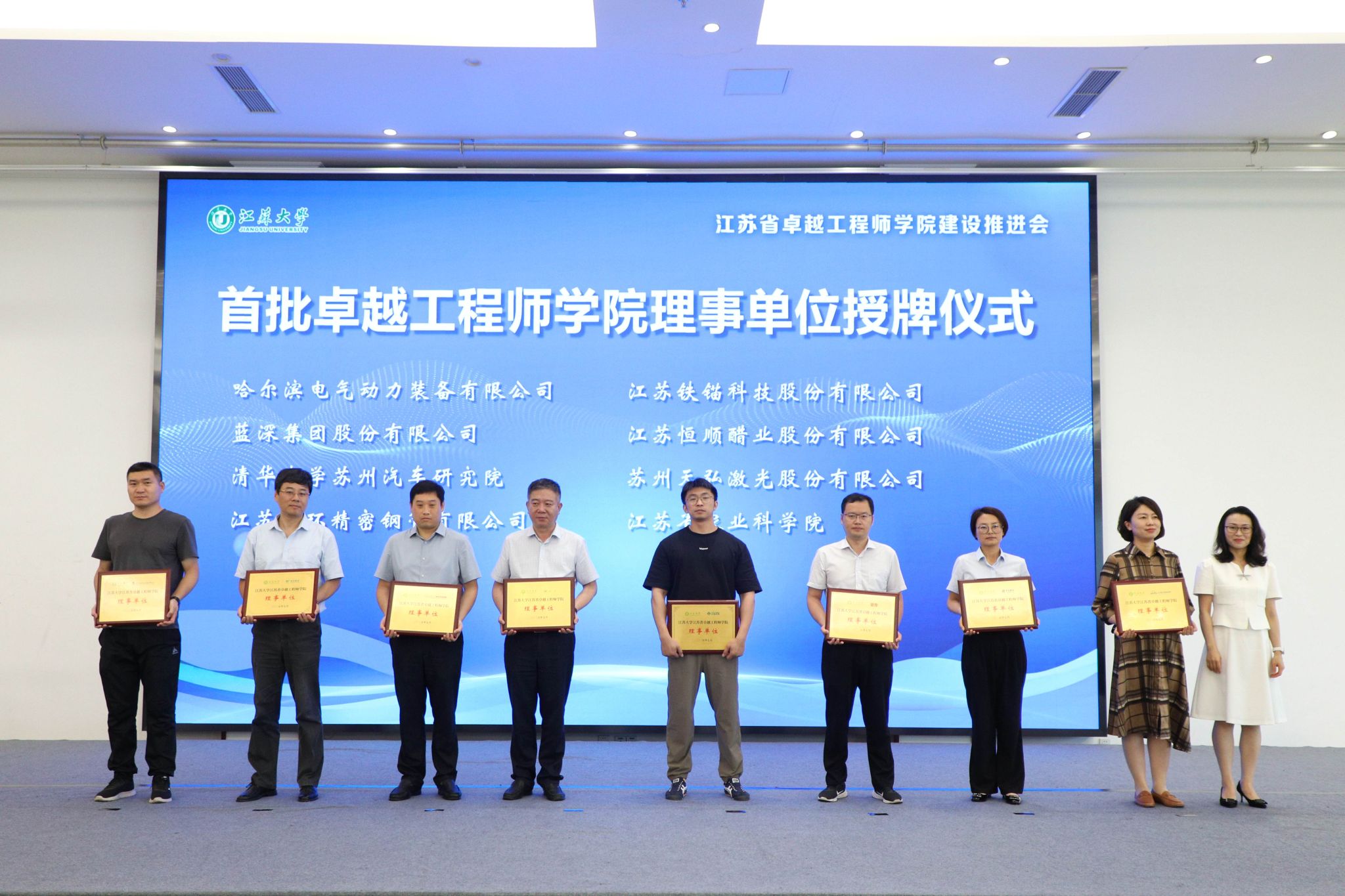 7月3日,金年会jinnianhuicom江苏省卓越工程师学院建设推进会暨理事会成立会举行。副校长、研究生院院长、卓越工程师学院院长蔡英凤,中汽院(江苏)汽车工程研究院有限公司、国家农业信息化工程技术研究中心、南水北调东线江苏水源有限责任公司、中国科学院工程热物理研究所、广西玉柴机器股份有限公司、中国航发贵州红林航空动力控制科技有限公司、江苏省农业科学院、苏州汇川联合动力系统股份有限公司、江苏沃得农业机械股份有限公司、蓝深集团股份有限公司等30多家央国企和民企单位代表、19家卓工项目建设团队的校内外负责人,人事处、教务处、科技处、产学研处、学工处、各学院主要负责人等100余人出席会议。会议由研究生院常务副院长、卓越工程师学院执行院长朱孝勇主持。