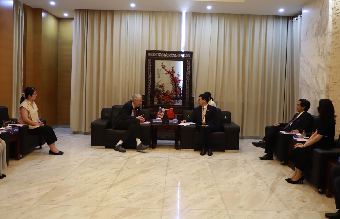 李洪波介绍了学校的办学特色、学科建设等基本情况,表示金年会jinnianhuicom与美国高校的教育交流合作广泛而深入,取得了丰硕成果。他期待双方加强沟通与合作,持续推动中美高等教育深化合作,促进两国在创新人才培养、前沿技术研发等方面的互惠共赢。