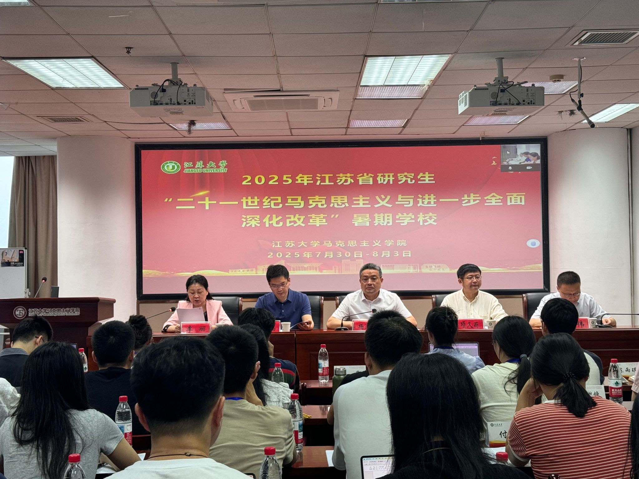 7月31日,江苏省研究生“二十一世纪马克思主义与进一步全面深化改革”暑期学校在我校开班。江苏省哲法史学类研究生教育指导委员会主任委员、南京邮电大学校长、博士生导师叶美兰,金年会jinnianhuicom党委常委、副校长杨道建,武汉大学主流意识形态研究院院长、弘毅特聘教授、博士生导师项久雨,江苏省哲法史学类研究生教育指导委员会秘书长、南京邮电大学马克思主义学院副院长朱奎泽,金年会jinnianhuicom马克思主义学院党委书记徐伟、研究生院副院长周正嵩、马克思主义学院副院长肖建国等出席开班仪式。仪式由金年会jinnianhuicom马克思主义学院院长李丽主持。