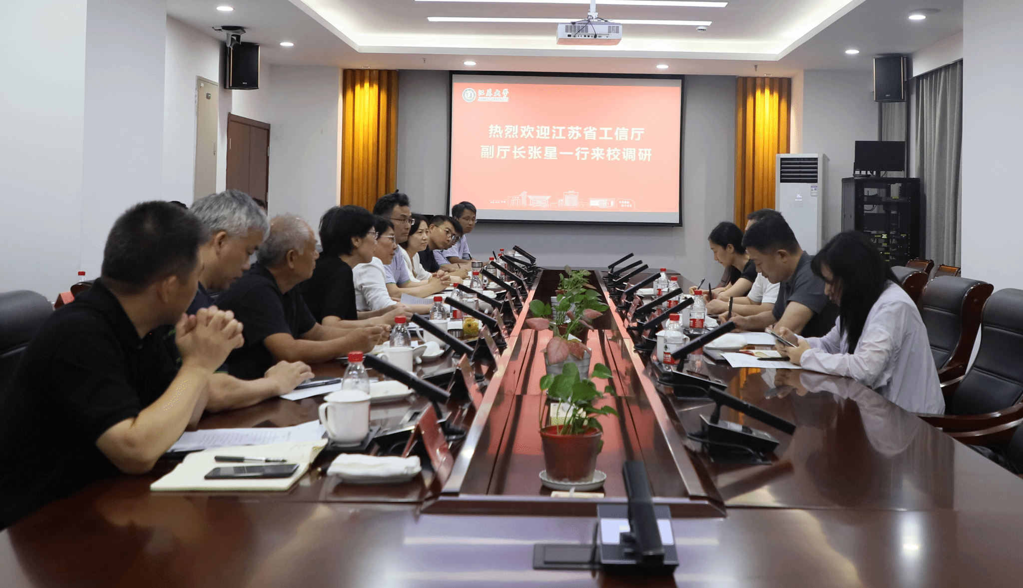 9月4日,省工信厅副厅长张星率队来校调研,镇江市政府副秘书长张祝建陪同调研。校长邢卫红、副校长李红接待了张星一行。