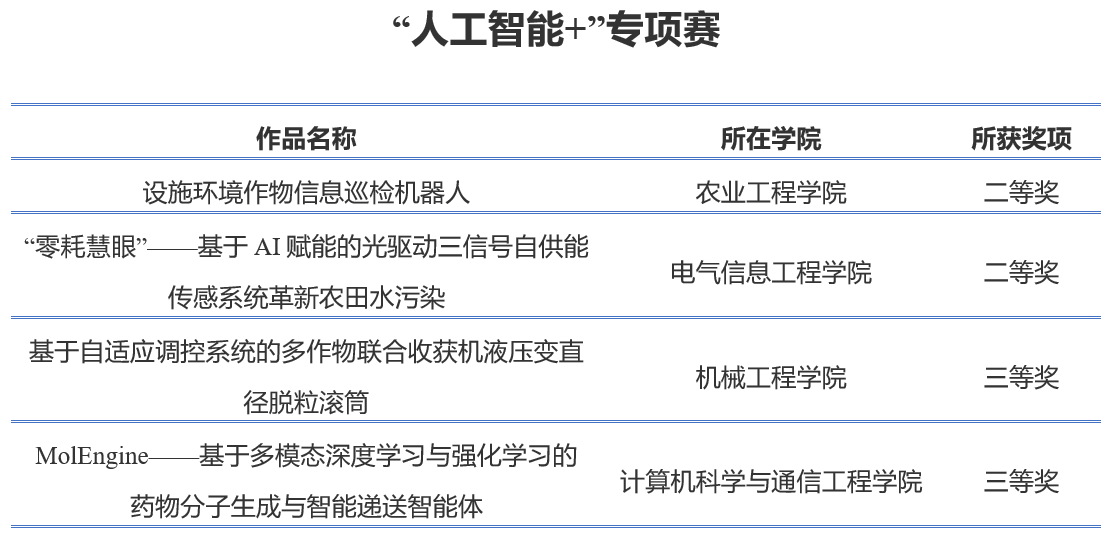 依据国赛竞赛规则,学校专项研究,选送了6件作品参加国赛,最终3件作品入围全国终审决赛现场。此外,3件“人工智能+”专项赛作品入围全国终审决赛现场。(团委)