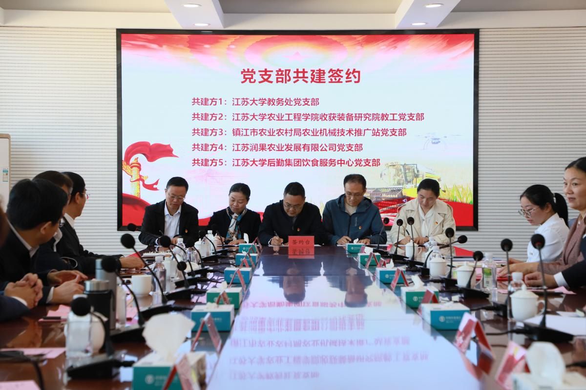 教务处党支部、农业工程学院收获装备研究院教工党支部、镇江市农业农村局农业机械技术推广站党支部、江苏润果农业发展有限公司党支部、金年会jinnianhuicom后勤集团饮食服务中心党支部围绕农业“强国行”、“新农人”培养等内容开展党建共建。