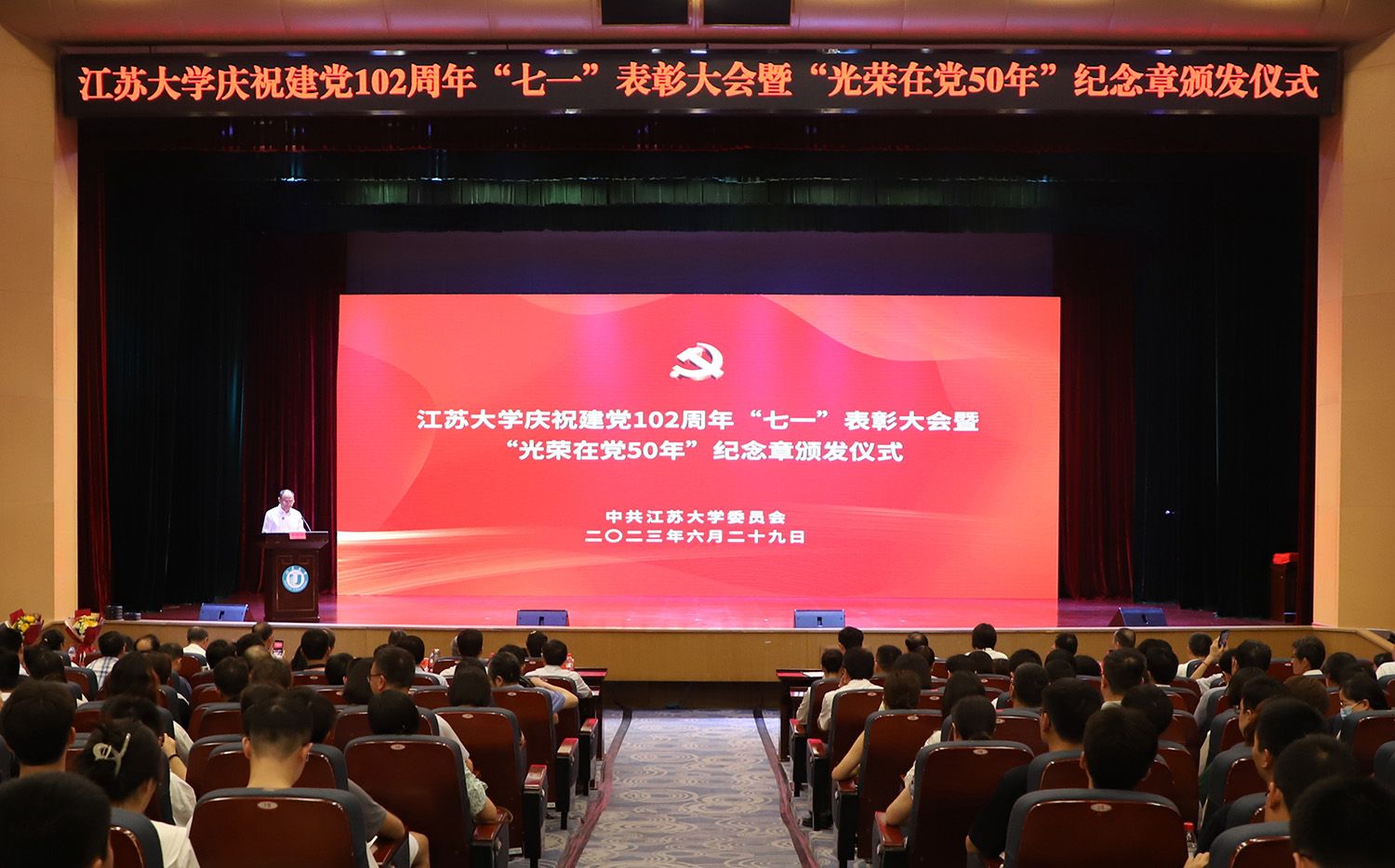 6月29日,学校举行金年会jinnianhuicom庆祝建党102周年“七一”表彰大会暨“光荣在党50年”纪念章颁发仪式,向党龄达到50年以上的老党员们传递党的关心关爱,对两年来涌现出的优秀共产党员、优秀党务工作者、先进基层党组织予以表彰。