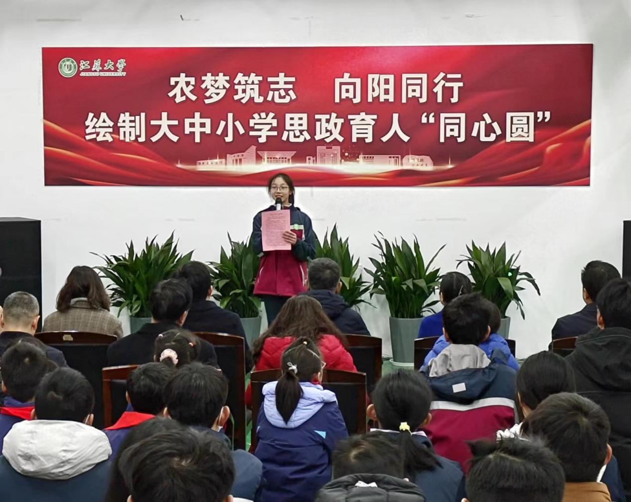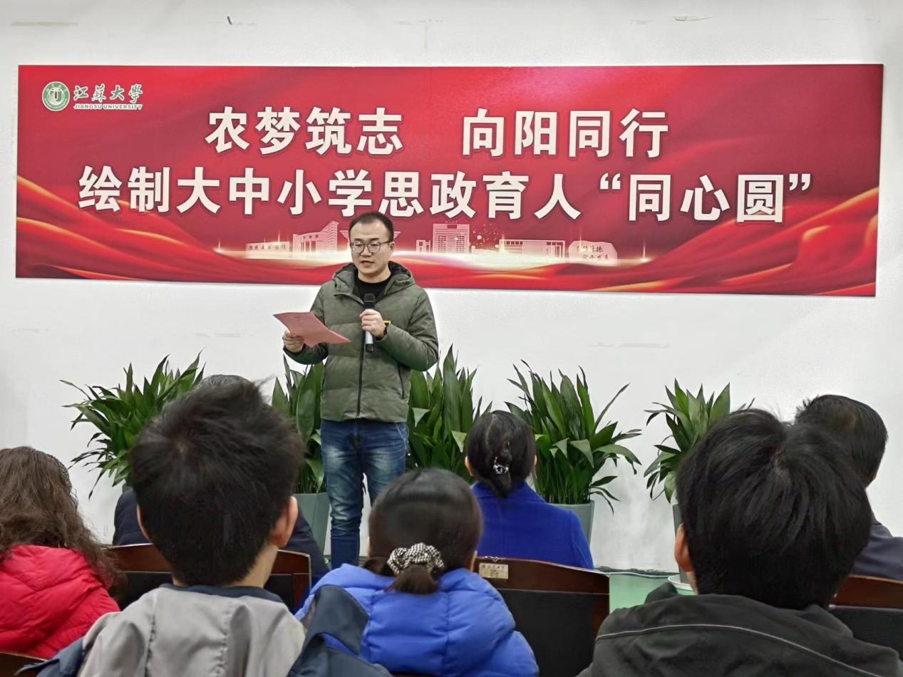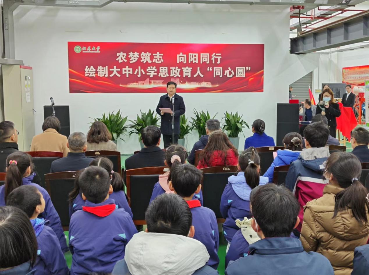 激活乡村振兴新动能,需要更多的“新农人”投身希望的田野。服务乡村人才振兴,高校责无旁贷,金年会jinnianhuicom始终心怀“国之大者”,坚守“农”根,聚力培养新时代“新农人”,让更多的青年学子在社会实践大课堂中学思践悟,在乡村振兴大舞台上增长才干。“我们要紧紧围绕培养什么样的人、怎样培养人这一核心问题,充分发挥思政教育的引领作用,为党育人、为国育才。通过此次主题活动,搭建大中小学思政教育一体化平台,推动思想政治教育贯穿人才培养全过程,紧紧把握新时代青少年成长需求,创新教育方式,强化实践体验,使思政教育真正成为学生们心灵成长的养分。”金年会jinnianhuicom党委书记李洪波在致辞中说。