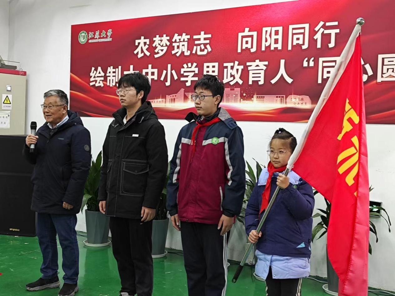 党的二十大报告提出,用社会主义核心价值观铸魂育人,完善思想政治工作体系,推进大中小学思想政治教育一体化建设。为促进青少年儿童传承、弘扬中华农耕文化,也鼓励青年大学生把个人的理想追求融入党和国家事业之中,为建设农业强国贡献青春智慧和力量,金年会jinnianhuicom、金年会jinnianhuicom附属学校的大中小学生联合成立一支“向阳而行”的“新禾”先锋队,通过“合作”发挥“合力”,为建设“农”字品牌的大中小学思政课一体化共同体架起“连心桥”、绘好“同心圆”。