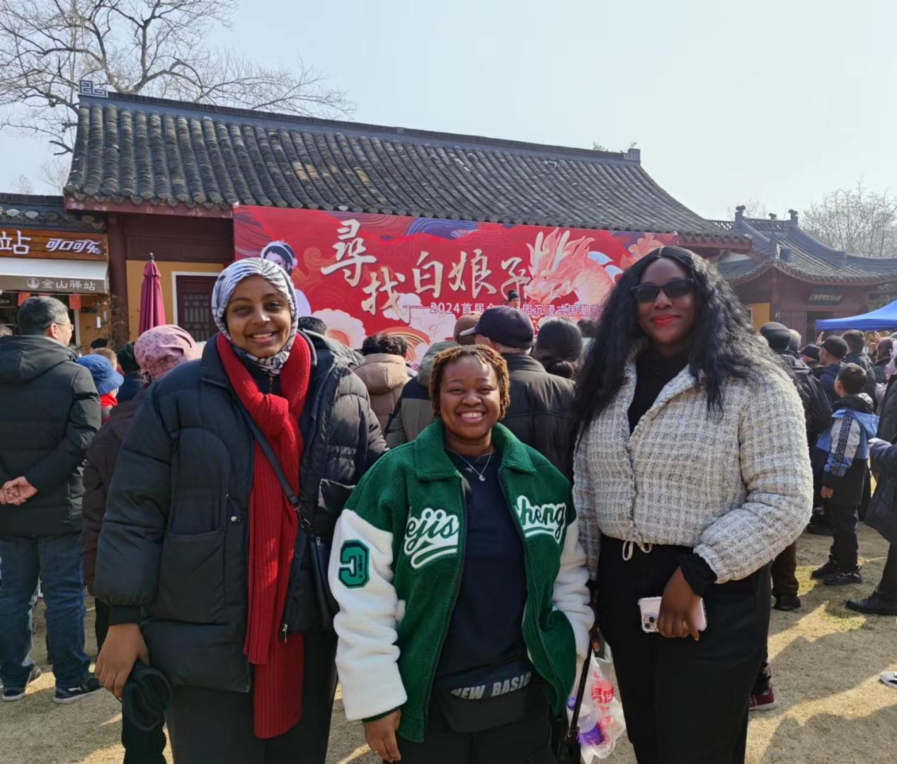 今年是来自坦桑尼亚的法提娅在中国度过的第五个春节,在金年会jinnianhuicom就读临床医学专业的她还有一年就将完成自己的学业,约上三两好友,在春节期间感受镇江浓浓的年味,对于法提娅来说这还是第一次。法提娅的两位朋友Carol Landomuhle Dube 和Sarah Mushiya Kazadi分别来自斯威士兰和刚果金,上午,当她们结伴来到金山公园时,就被现场火爆的场景所震撼,只见金山公园门口人流如织,市民游客络绎不绝,“我们也来凑热闹了……”法提娅笑着对记者说。