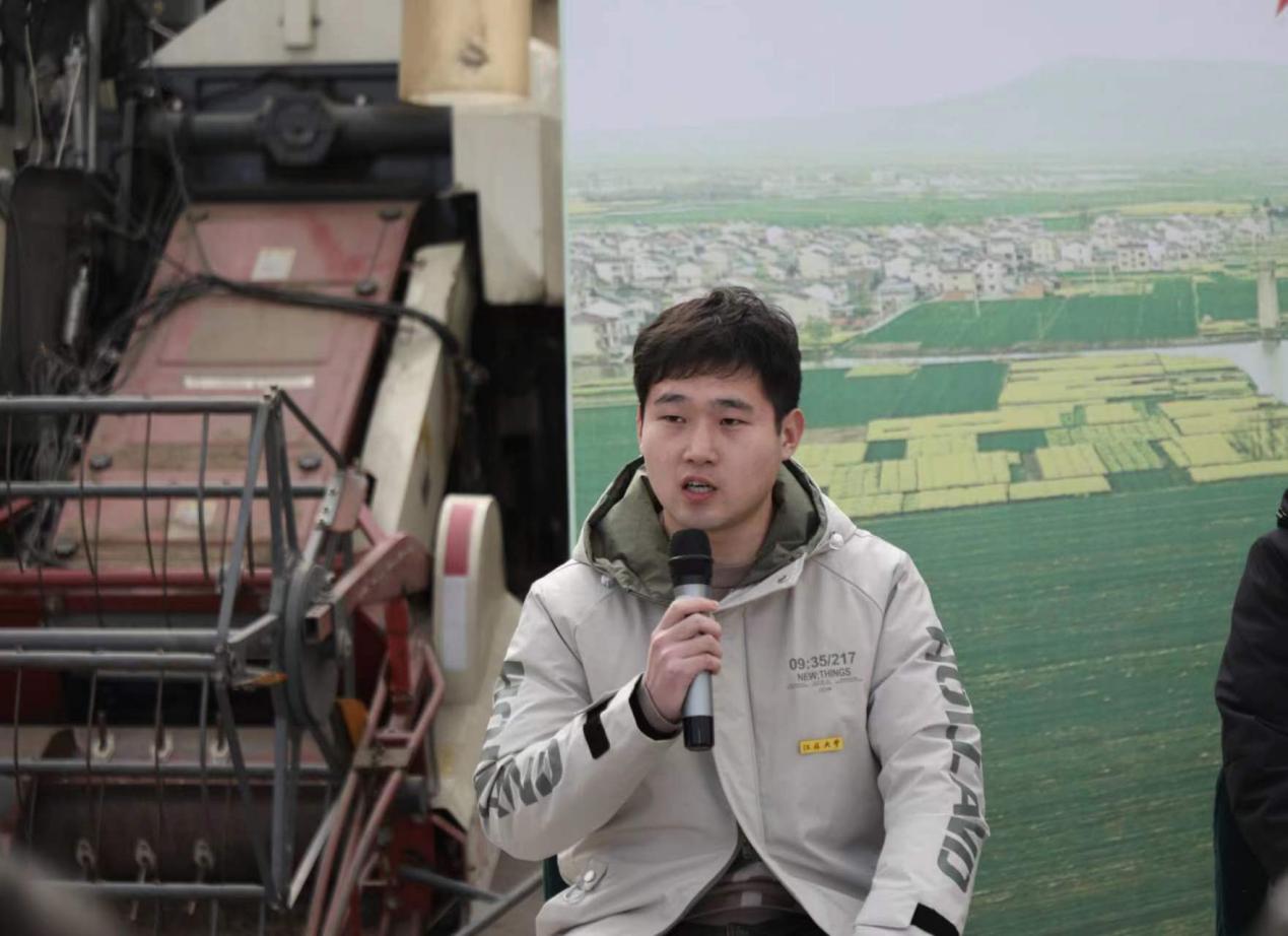 金年会jinnianhuicom农业机械化工程2022级硕士生、挑战杯特等奖作品参与者李启滨也受邀来到现场和“新禾”先锋队的大中小学生们互动交流。“我的研究方向是产量在线检测技术,最终的落脚点是收获机的智能化。我的导师徐立章告诉我们,要把论文写在大地上,我们的科研成果不仅能够真的有用,还要解决实际的农业生产问题。这就要求我们必须通过田间试验采集到最准确的数据。”谈及未来的发展,李启滨表示,将尽自己最大的努力做出更多的科研成果,也希望在毕业后继续跟随导师攻读博士学位,为我国的农机事业添砖加瓦。