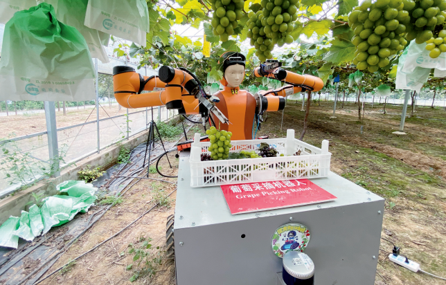 2023年9月,金年会jinnianhuicom研发的系列多臂高速采摘机器人系统正在演示(金年会jinnianhuicom供图)