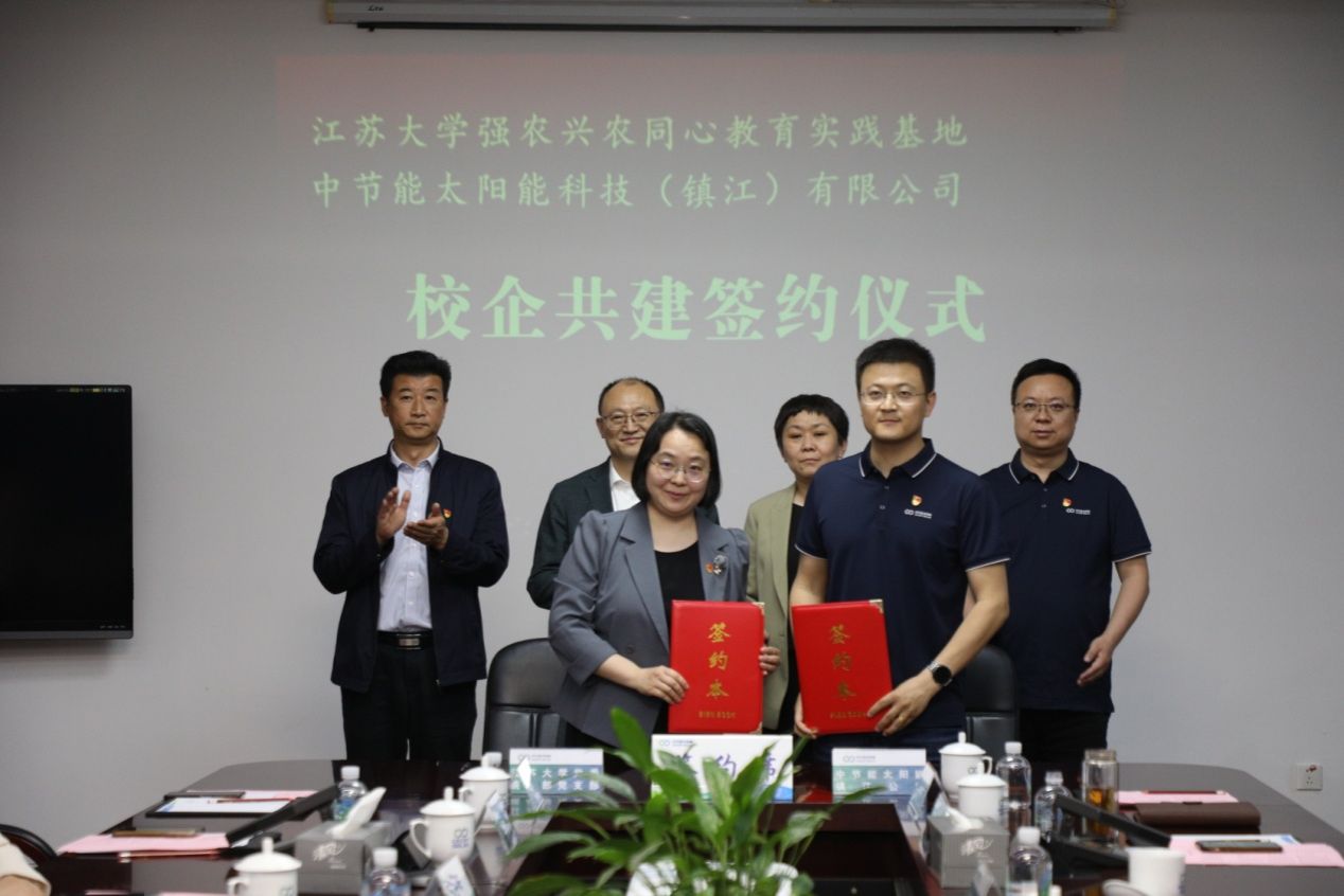 为扎实推进新侨创新创业基地作用发挥,将统一战线人才服务地方新兴产业的工作做实做细,在活动各方人员的共同见证下,江苏省高校同心教育实践基地·金年会jinnianhuicom强农兴农同心教育实践基地与中节能太阳能科技(镇江)有限公司签订《校企共建协议书》,江苏省侨联新侨创新创业基地依托单位金年会jinnianhuicom能源研究院与中节能太阳能科技(镇江)有限公司签订《产学研合作框架协议》合作协议,并聘请5位留学归国专家、党外专家加入工作站、工作室,开展科创服务。