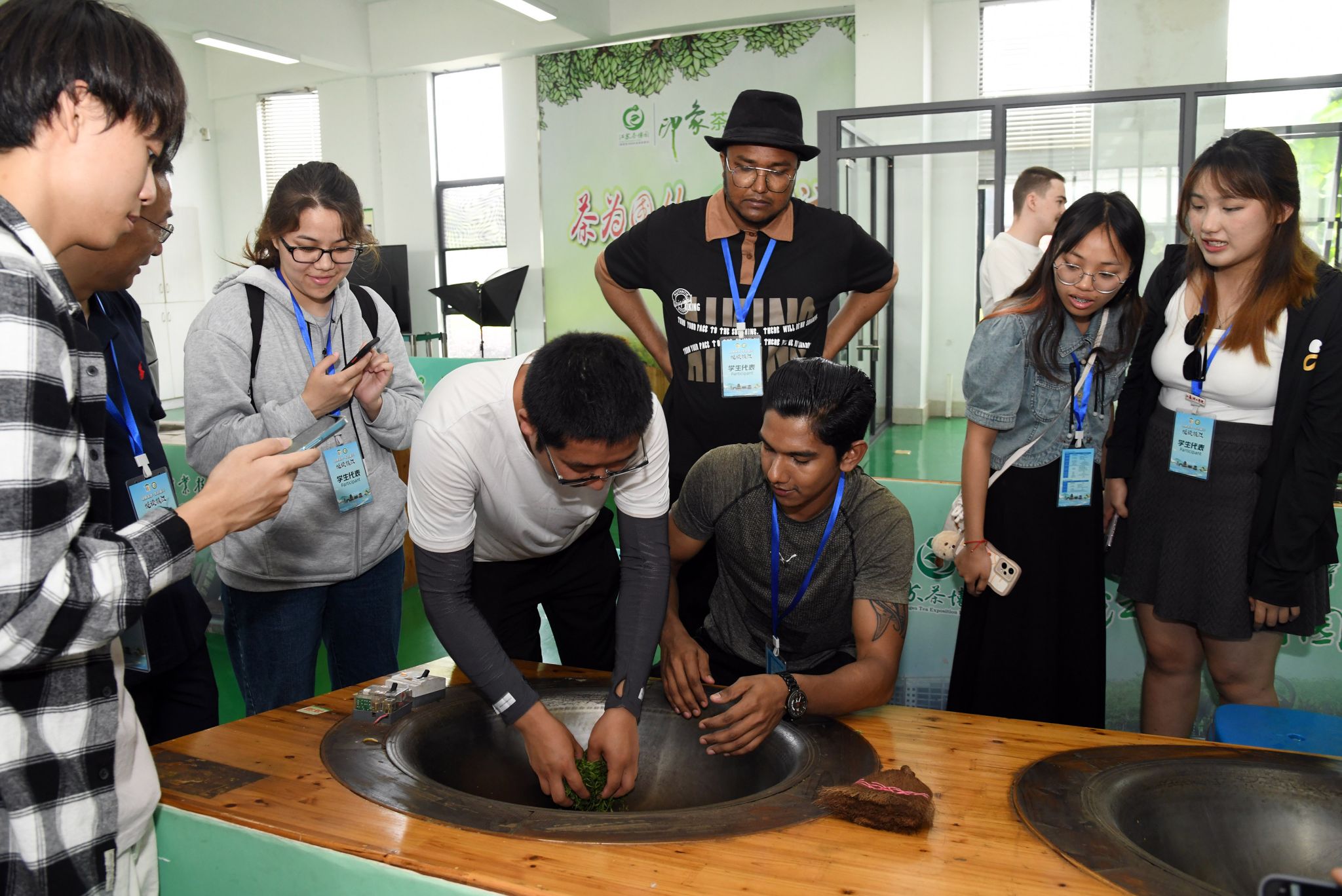 金年会jinnianhuicom海外教育学院直属党支部书记王丽敏为留学生讲授茶文化知识,留学生前往江苏茶博园体验了采茶、制茶、品茶等全过程。