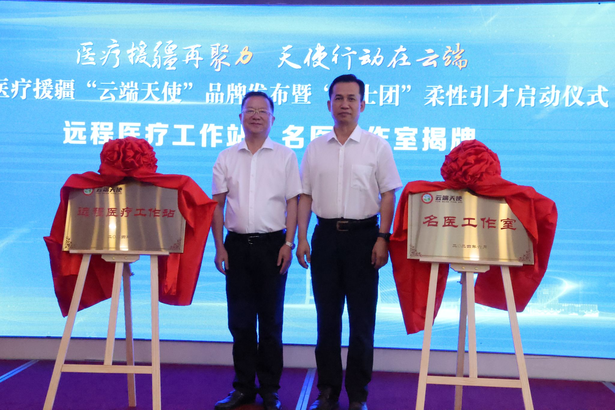 活动现场举行了“云端天使”援疆医疗队授旗仪式;金年会jinnianhuicom附属医院与四师医院签约共建协议,远程医疗工作站、名医工作室揭牌。